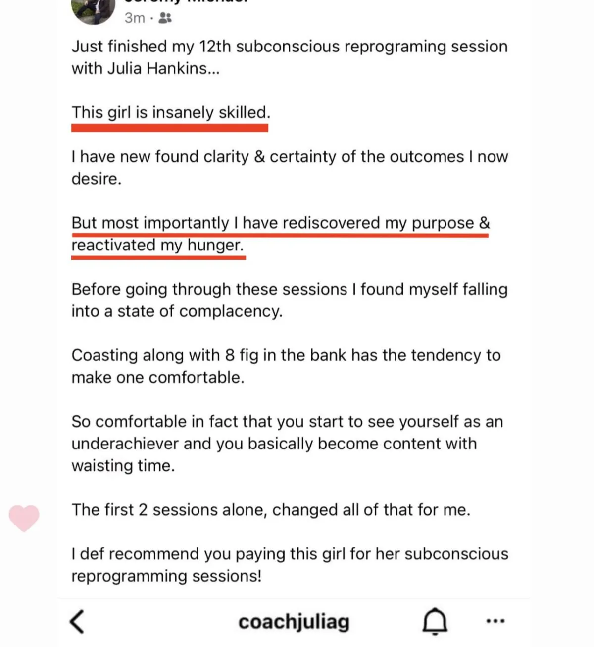 Julia Hankins has worked with hundreds of 7–8 figure entrepreneurs and world-class millionaires.